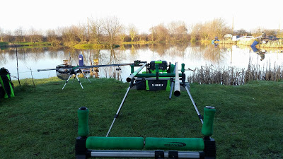 The pleasure lake was our destination for today, following Dave Williams from the team and good friend of the team Stewart Rustling. Dave fished the pole, on the left hand side of the lake near the airator, with Stewart on the Guru Hybrid feeder on the car park side of the lake, fishing to the corner of the island. The weather was cold but dry, no cloud cover and a little bit of an icy breeze it wasn't a bad day at all, however, with the recent freezing temperatures at the end of last week and the weekend, the colour had noticeably dropped out of the water